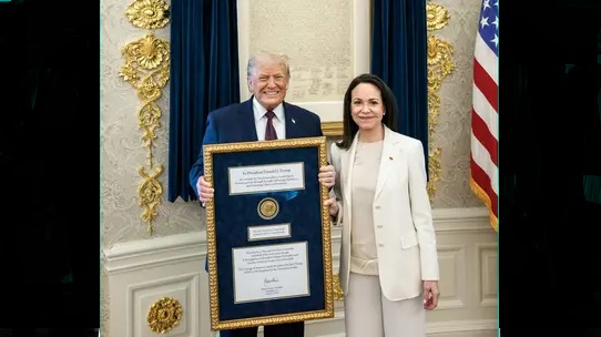 Y escribió en su cuenta Truth Social: «María me entregó su Premio Nobel de la Paz por el trabajo que he realizado. Un gesto maravilloso de respeto mutuo. ¡Gracias, María!».