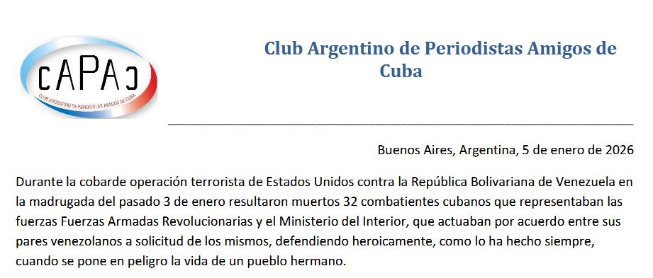 Mensaje del Club Argentino de Periodistas Amigos de Cuba