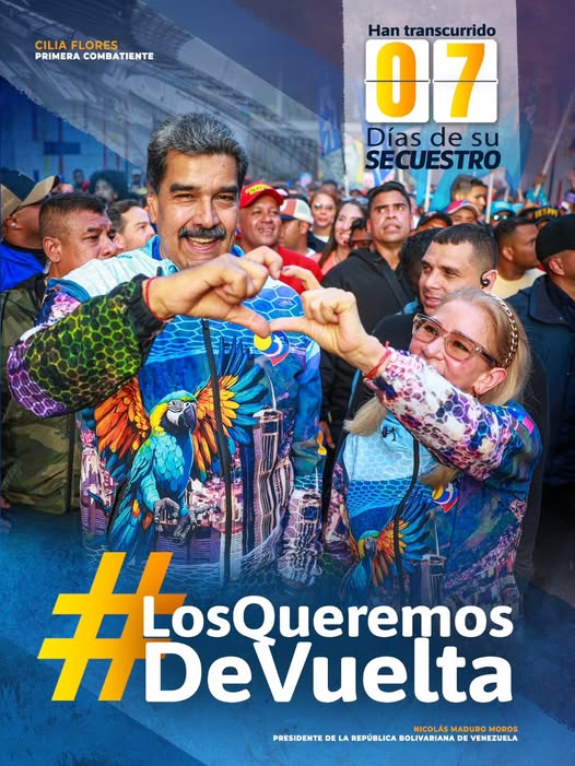 El presidente Nicolás Maduro forma parte de esa lista de luchadores cuyo ejemplo inspirará las luchas futuras. Los ataques destinados a envilecer y denigrar a un revolucionario solo han tenido el efecto contrario. Los pueblos del mundo saben que Trump ha secuestrado al presidente legítimo y constitucional de Venezuela, Nicolás Maduro. El pueblo venezolano ya está haciendo campaña por la liberación de Cilia y de Nicolás y está convencido de que volverán a su patria.