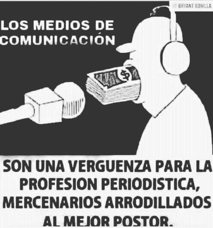 Patrones y empleados de medios fieles a los mandatos de capitales externos, como mercenarios que son, obedecen y acumulan las ganancias de la corrupción y han abandonado su profesión periodística porque desconocen los principios esenciales del periodismo básico: “los pueblos tienen derecho a una información veraz” como se registra en la UNESCO y si no lo es -como sucede ahora- no es periodismo, es publicidad como arma de todo tipo de guerra imperial.